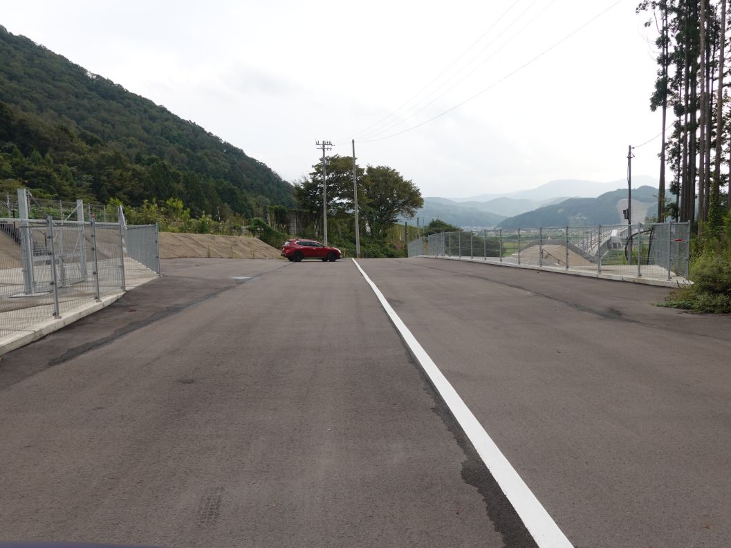 樫曲集落南側で木の芽川を渡り、高架上沿いの道を上ります。この道は幅員が狭く、急勾配なため、大型車は近くの中池見湿地 樫曲駐車場に止めた方が良いです。2021年5月撮影。