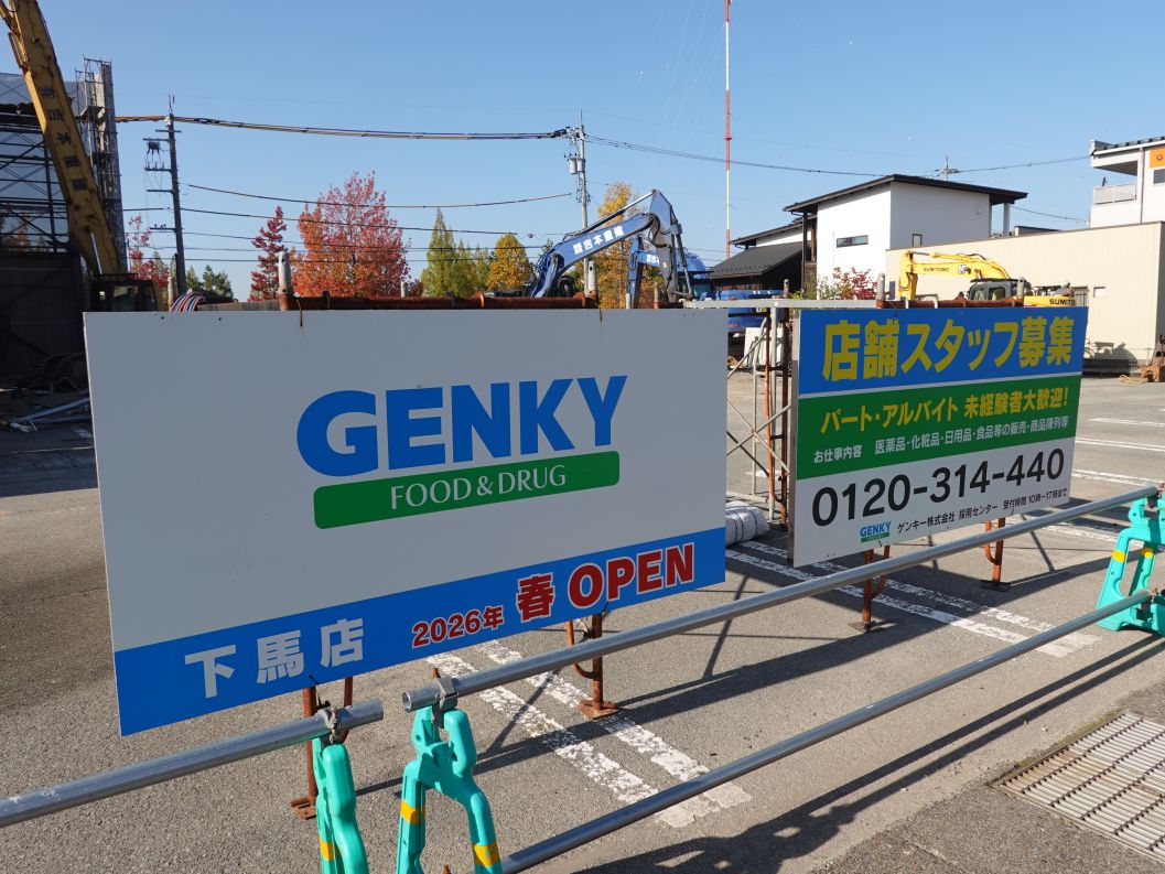 福井市下馬3丁目にあったMR.BEN(ミスターベンと雑貨屋hana(2025年8月に福井市高木町に移転)の跡地にゲンキー下馬店が建設されます。現在は既存建物の解体が進められており、2026年春オープン予定です。