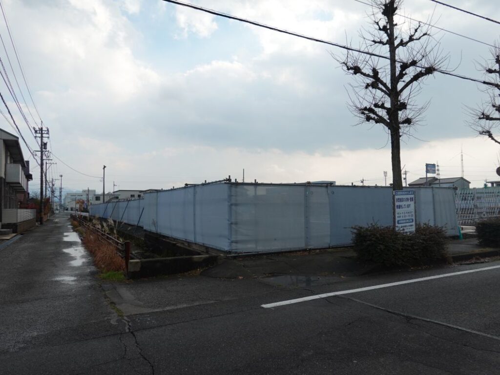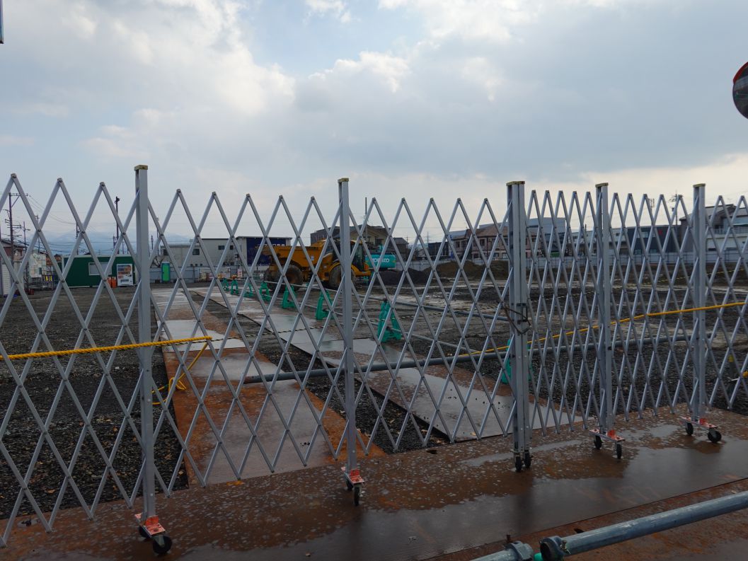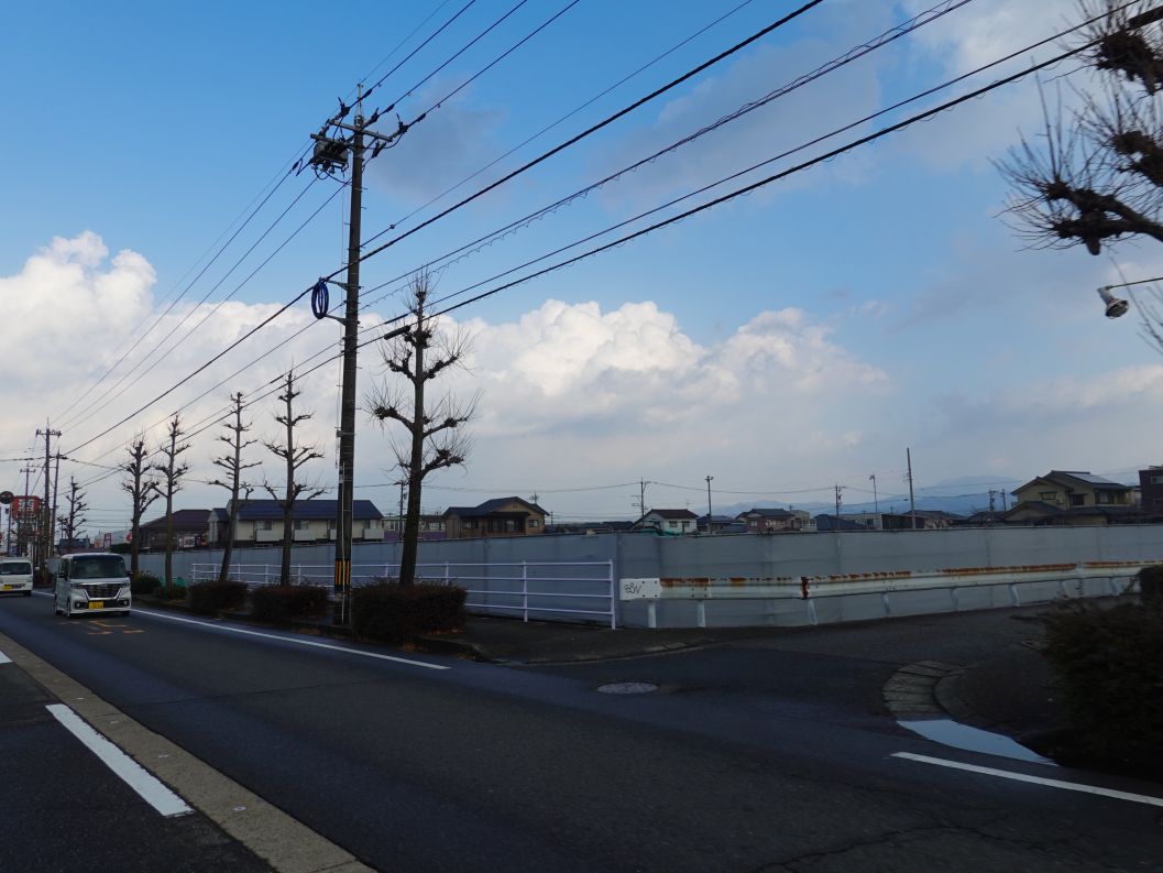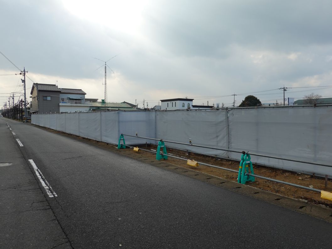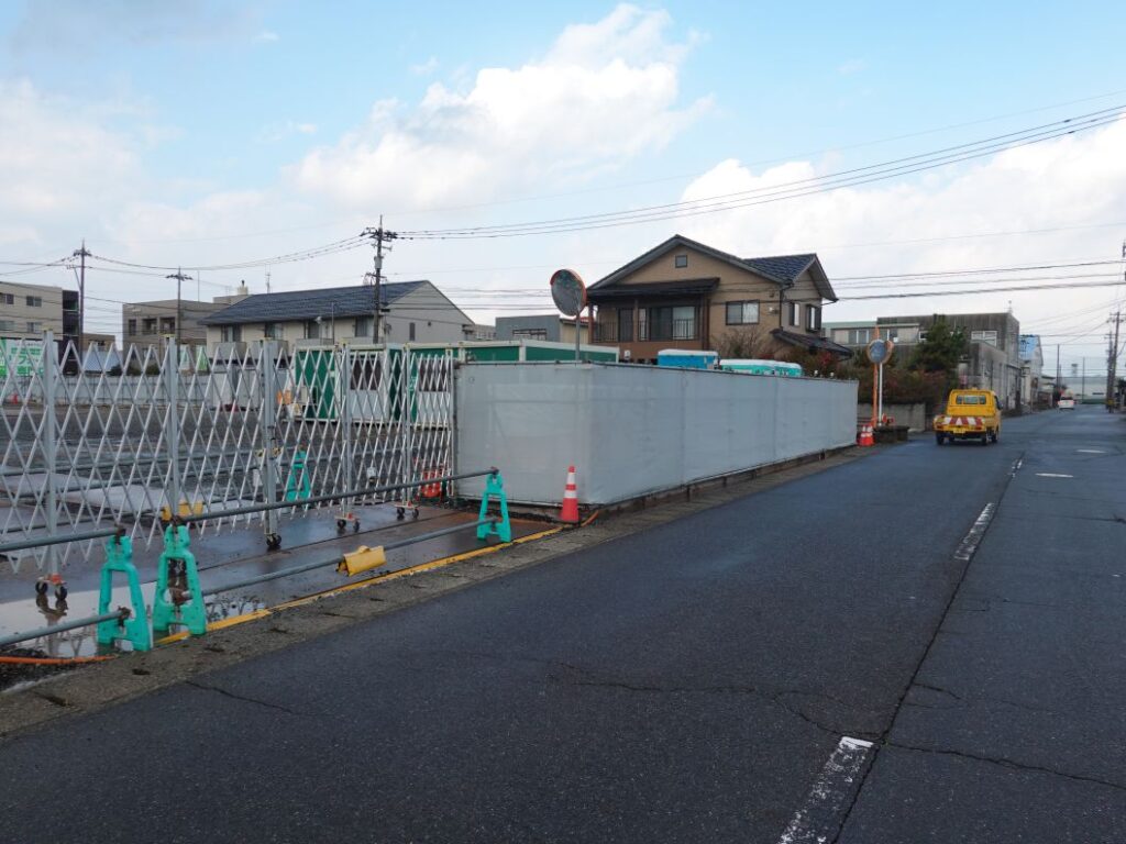 県道側、南西角です。敷地は防音シートで囲まれています。