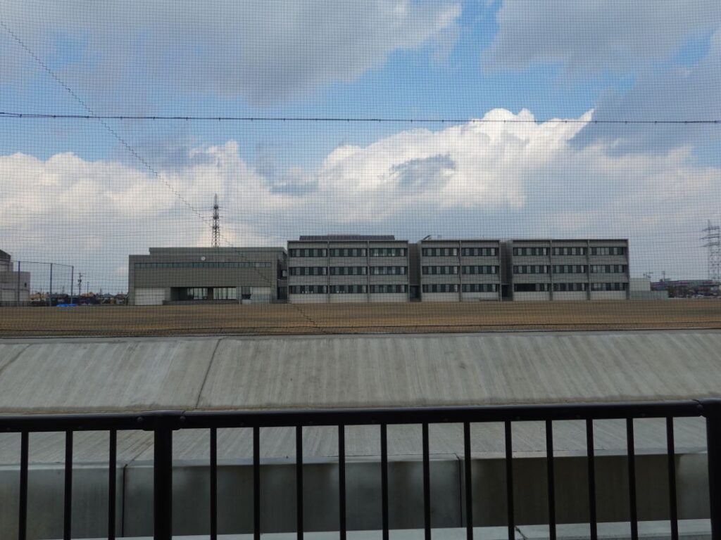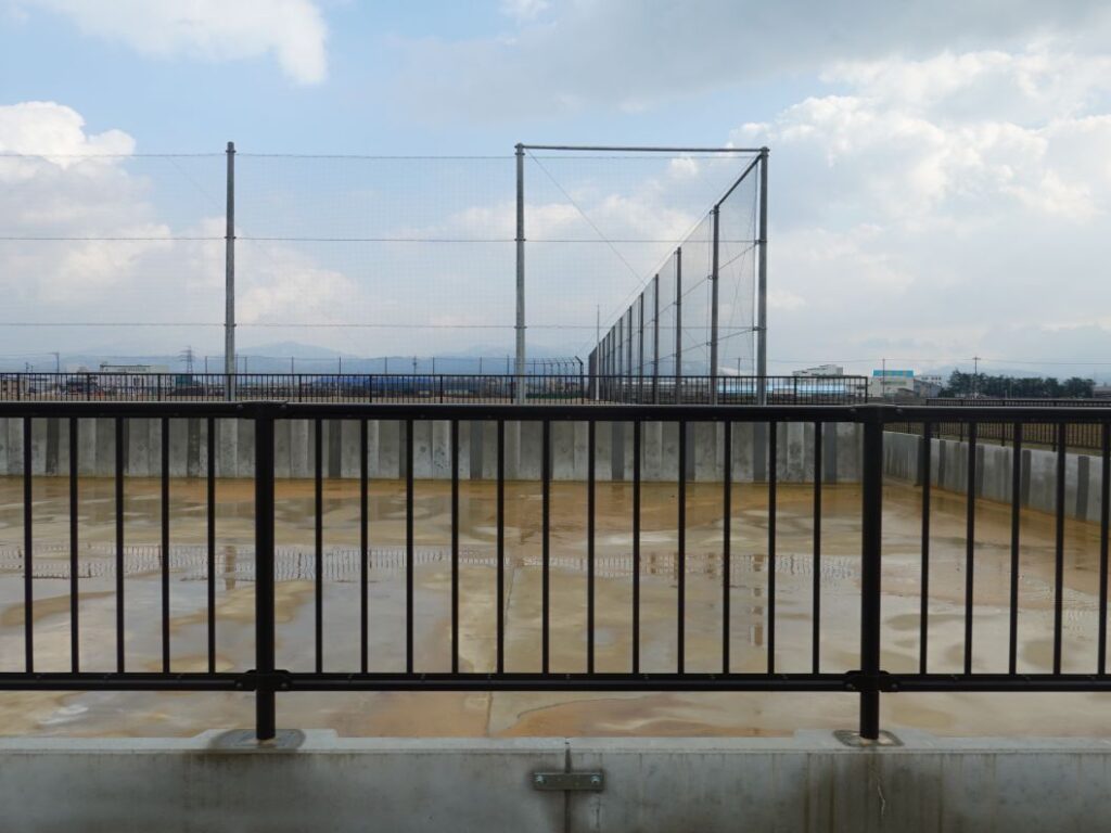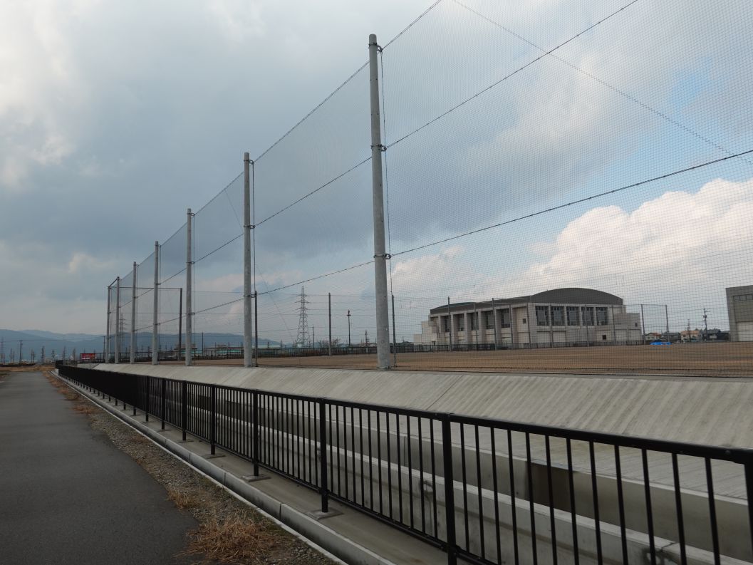 南側です。校庭を囲うネットフェンスが設置されました。