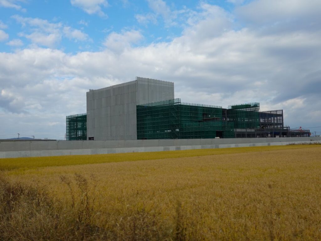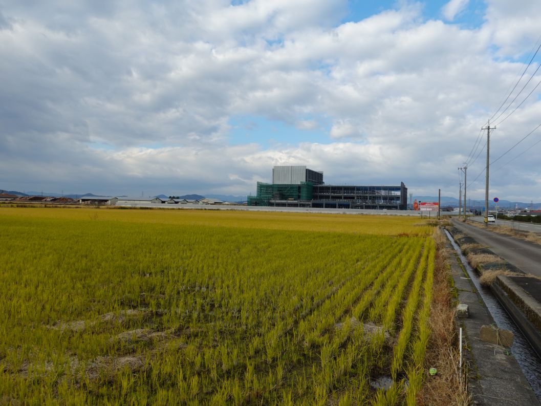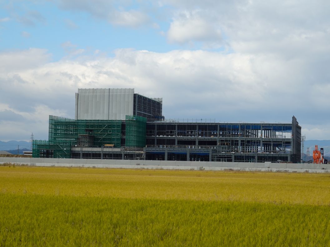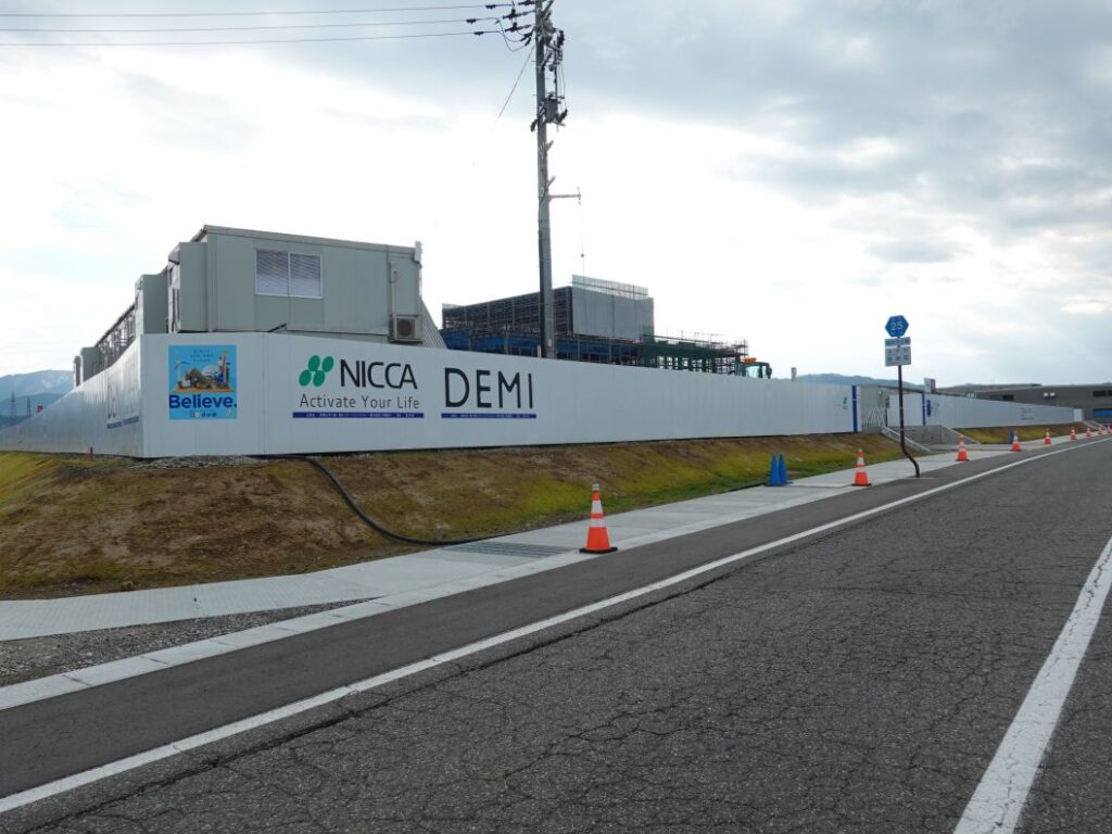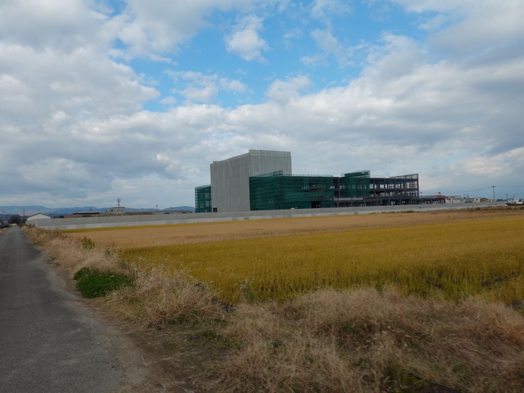 福井市稲津町の田園地帯では日華化学の新工場が建設中です。ここでは新工場の概要と2025年12月現在の様子を紹介します。
