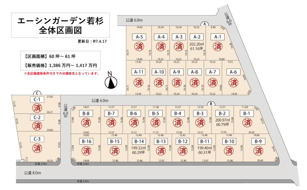 エーシン公式サイトより引用、2025年4月現在の販売状況です。残り4区画です。
