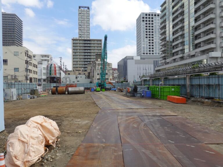 2018年10月21日の様子です。建物の解体がほぼ完了しました。解体が完了した南側では新本店ビルの基礎杭打ち作業が行われています。
