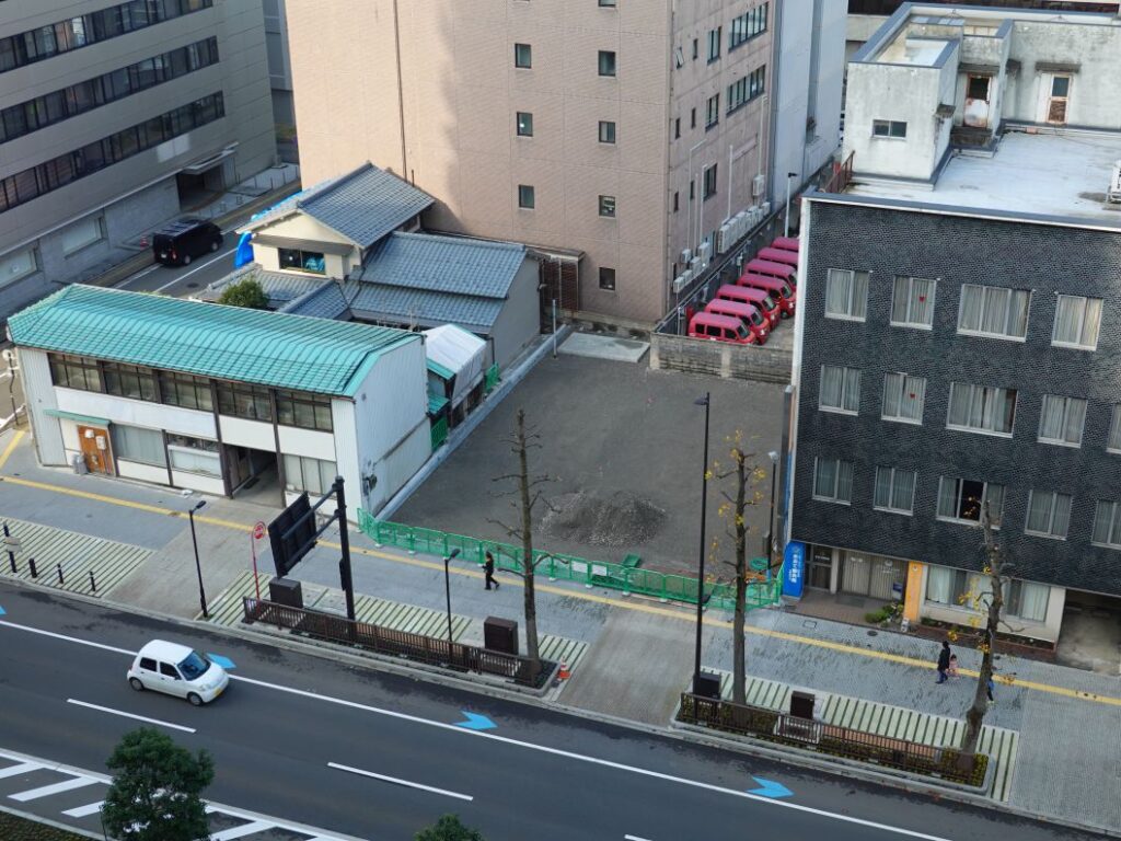 2025年12月7日の様子です。建物の解体が完了し、駐車場を整備しています。