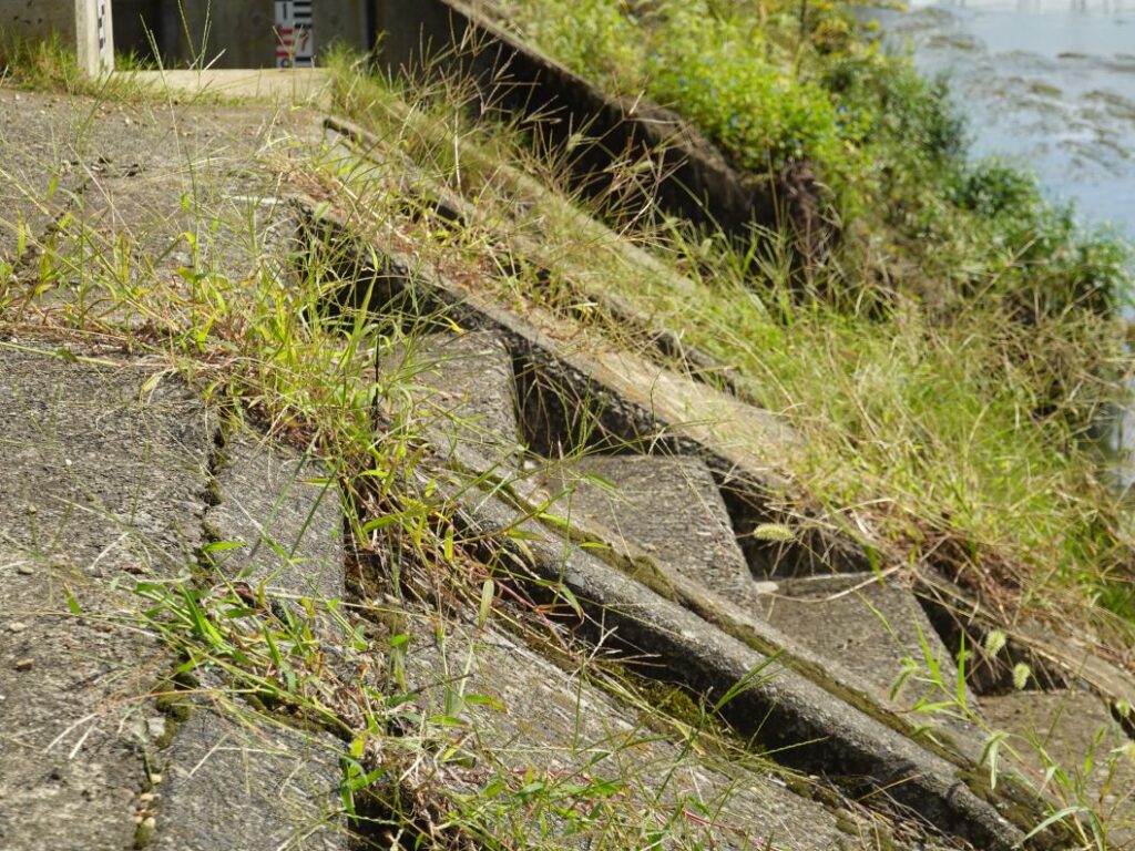 11分44秒、水門横の階段に明日風が座っており、遊歩道を朔が歩いています。