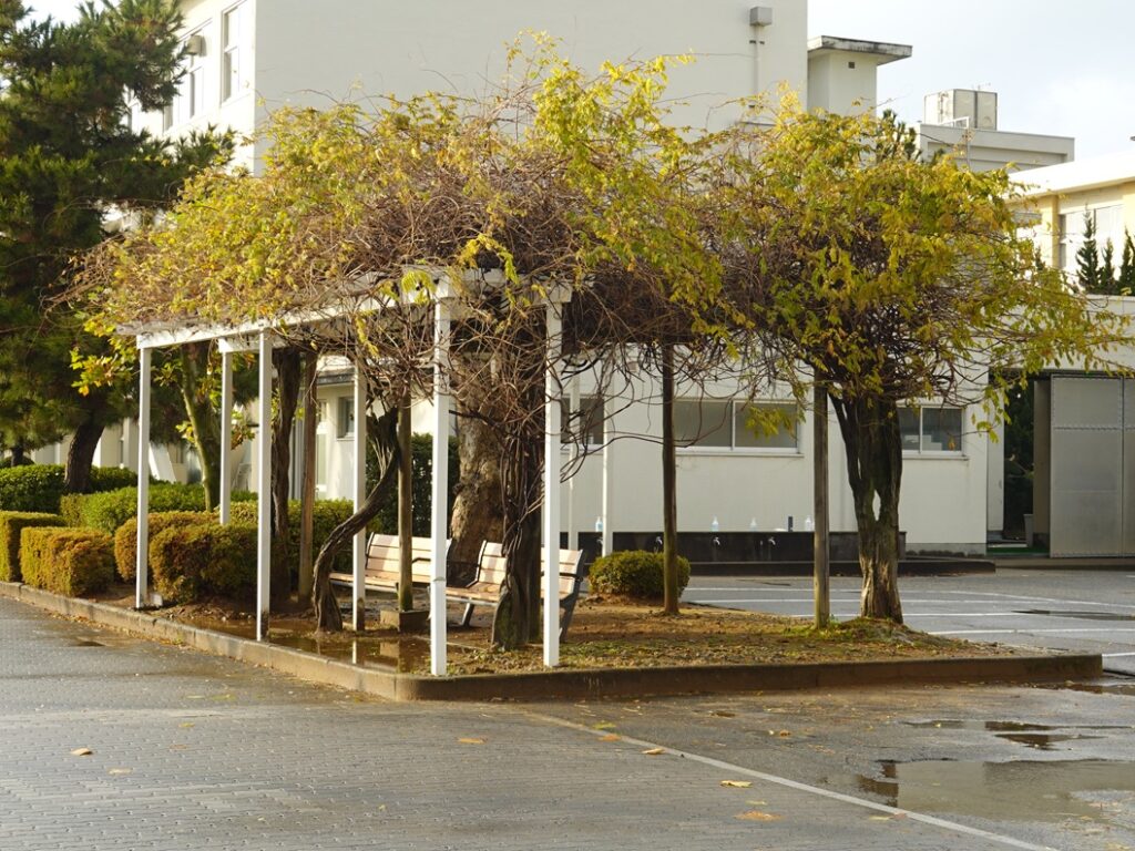 1分30秒、悠月のバスケ試合が終わり、朔は第一体育館前の藤棚のベンチで悠月が出てくるのを待っています。