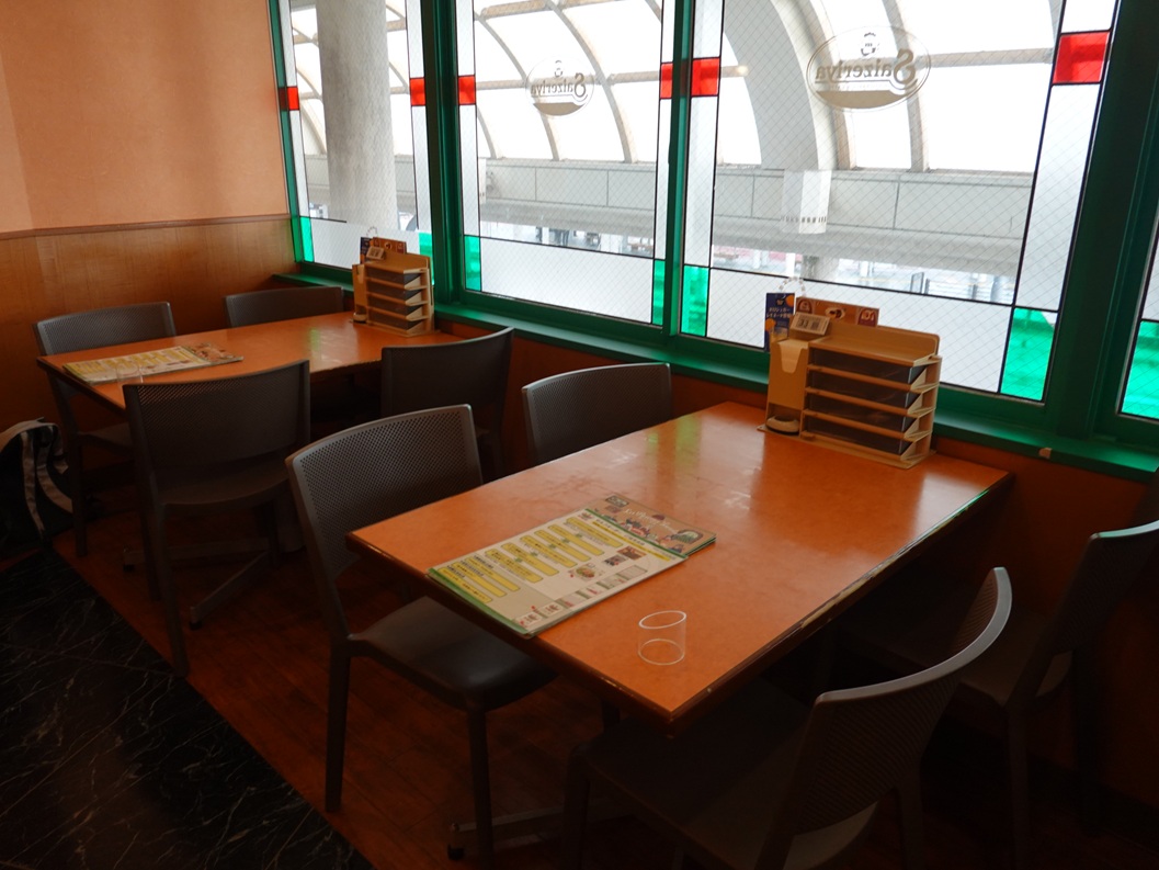 実際のサイゼリヤ福井駅前店の窓際の席はソファではなく、テーブルです。