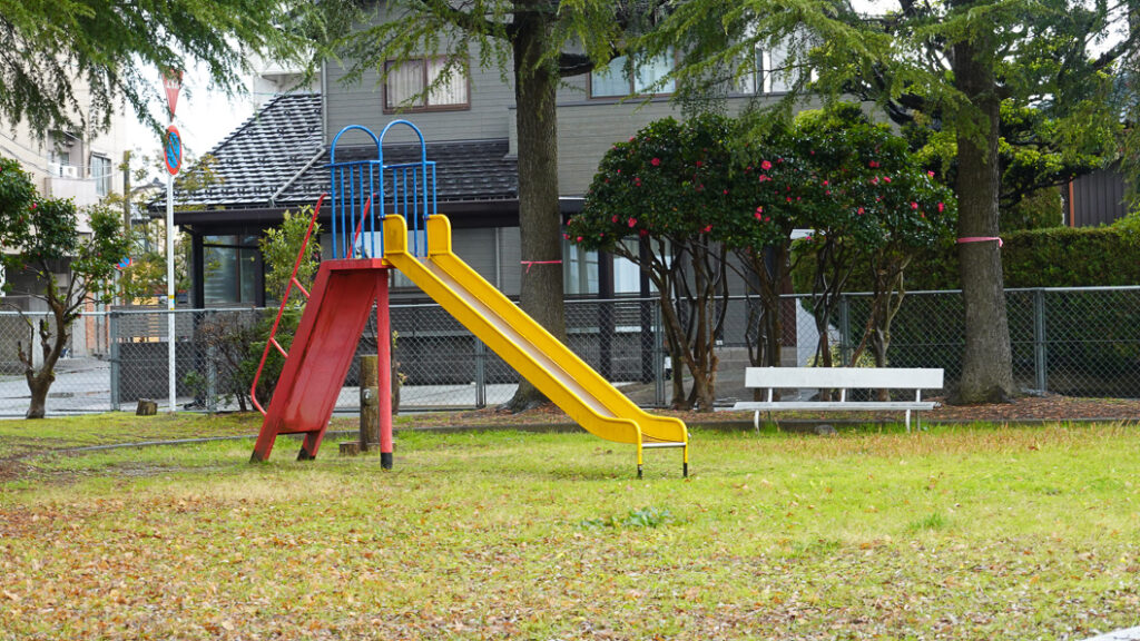 5分24秒、悠月がいつもの小さな公園の横を歩いています。