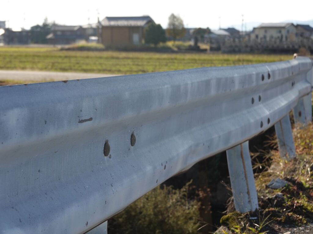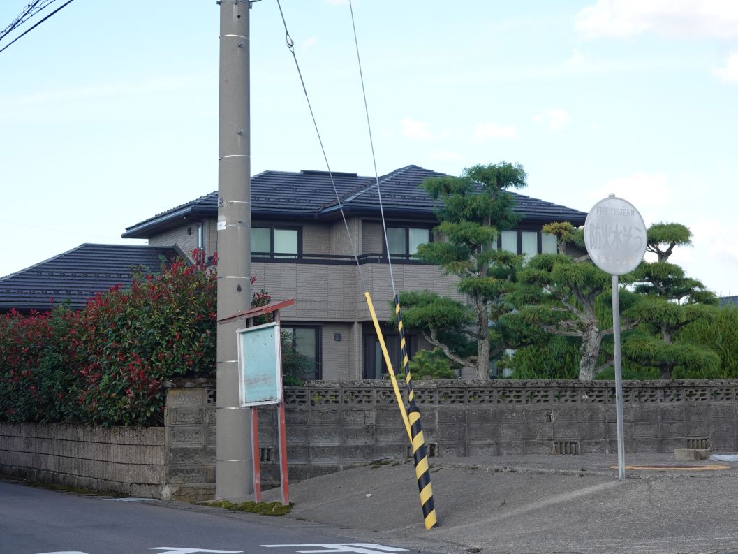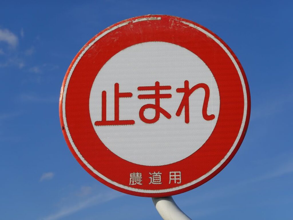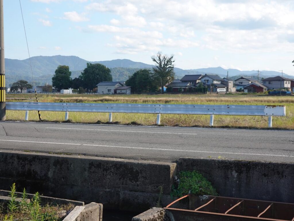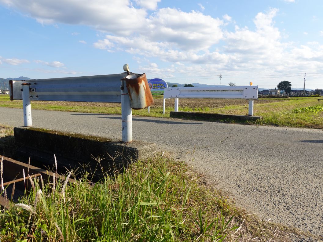ちなみに、この「止まれ」は堂島町北側の県道ガードレールから北へ150m行った交差点に橋と一緒にあります。