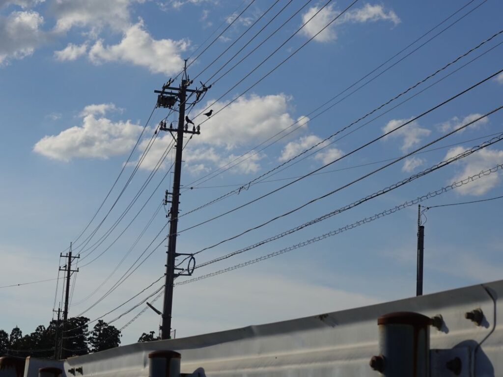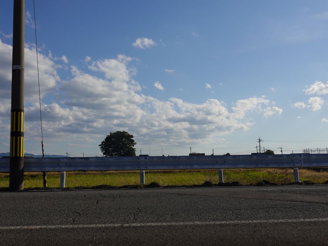 13:05、3人は堂島町集落北側の県道のガードレールに腰掛けます。