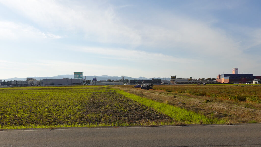 16:31、健太拡大。アニメでは側溝より外側が水田になっています。