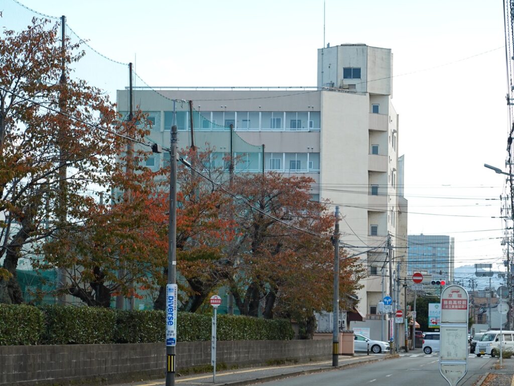 12:00、野球部が走っているシーンです。アニメでは学校敷地内からのアングルなので前面道路からので代用します。
