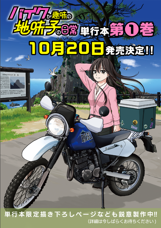 2025年10月20日、バイクが趣味の地味子の日常の1巻が発売されます。その表紙が福井市の越前海岸にある鉾島です。