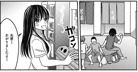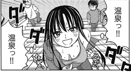 12話P11、森村さんは帰宅後、近藤先輩と一緒に再度温泉に行きます。向かったのは鯖江市のかわだ温泉 ラポーゼ かわだです。