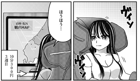 12話P6、3階の食事処です。休憩中に周辺の観光スポットが気になります。