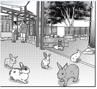 12話P7、森村さんがうさぎに餌をあげるシーンです。園内でうさぎの餌(にんじん)が売っています。