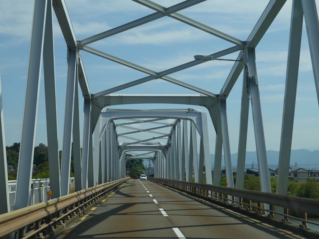 12話P3、九頭竜川河口に架かる新保橋(三国)です。