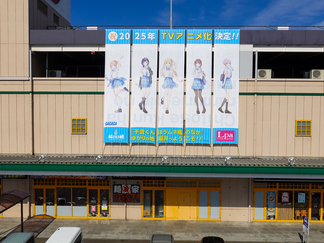 福福館前のエスカレート横には2023年夏に開催されたチラムネ福井コラボ第3弾の浴衣パネルが全員分置いてありました。