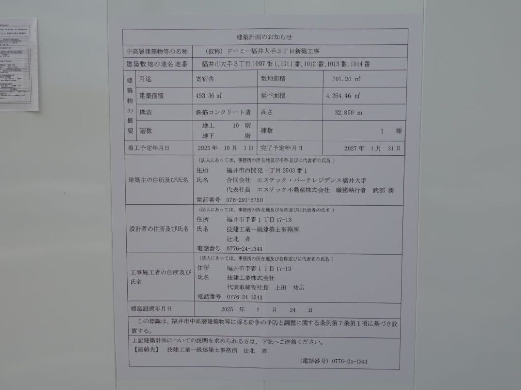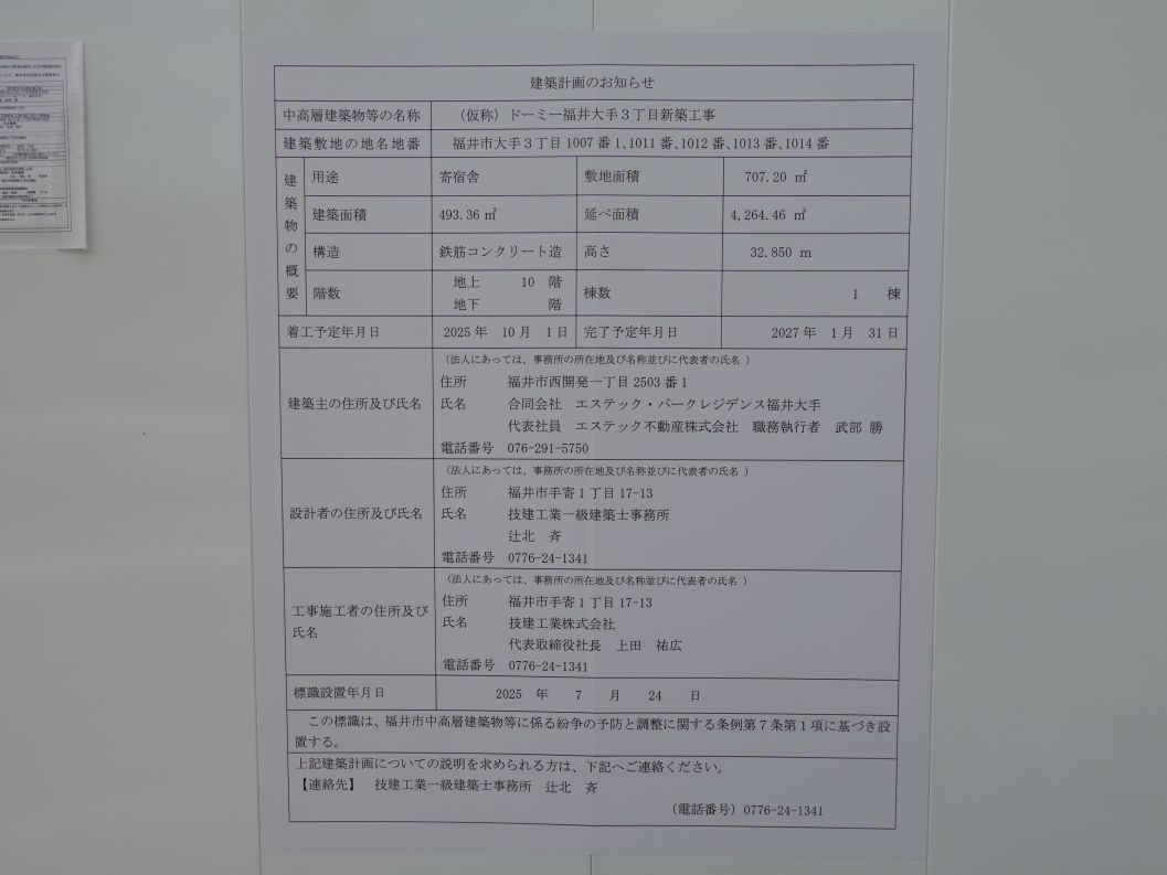 ・事業名称:(仮称)ドーミー福井大手3丁目新築工事