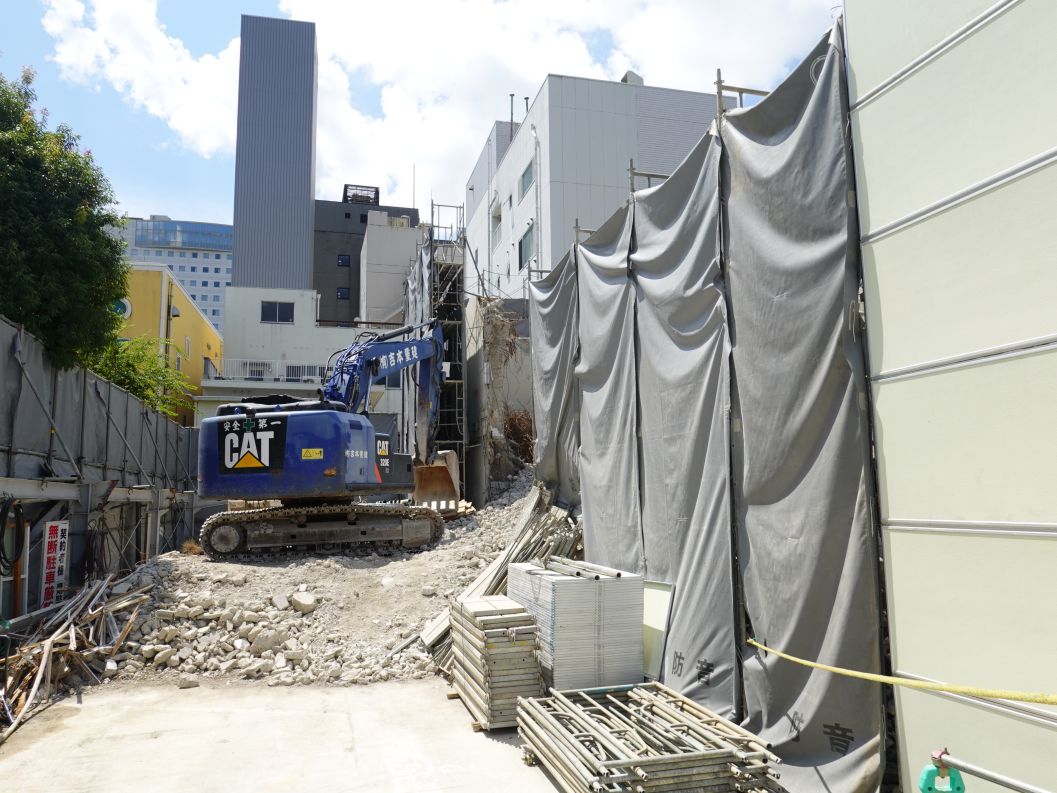 2025年8月16日の様子です。建物の解体が進み、半分の高さになりました。