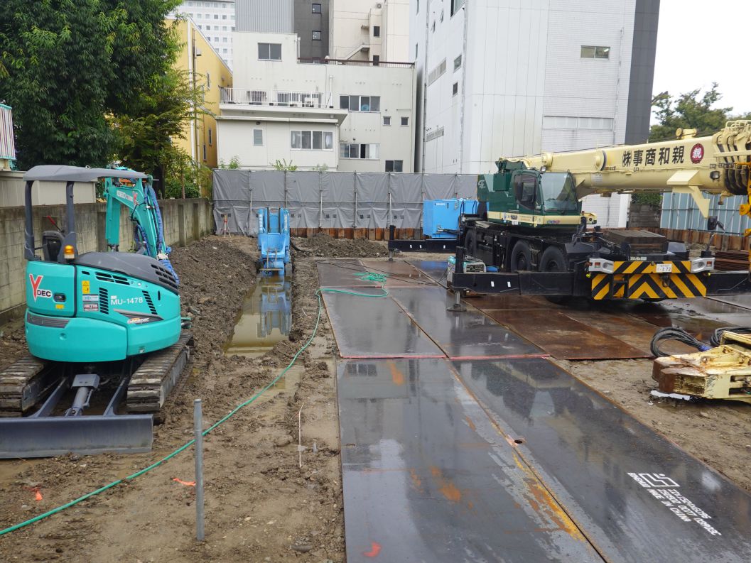 2025年10月5日の様子です。鋼矢板が現場に搬入されました。これから基礎工のための掘削が行われます。