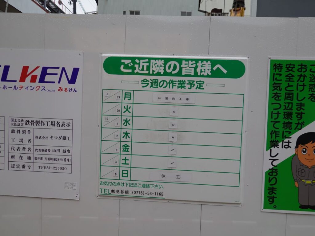 以上、【福井駅前ホテルプロジェクト5】(2025.10上)山留め工事 でした。