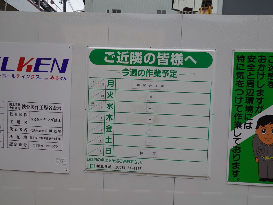 2025年9月29日の週は山留め工事が行われています。