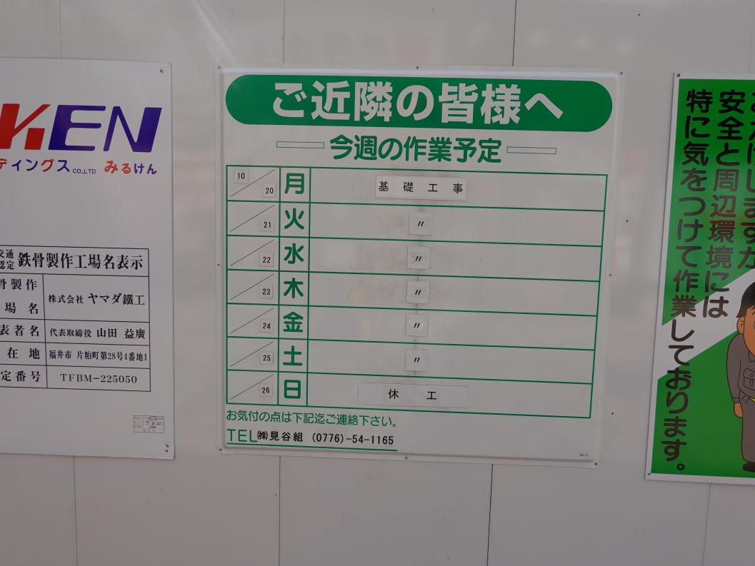 2025年10月20日の週は基礎工事が行われています。