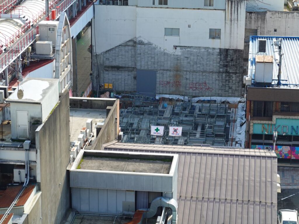 フクマチブロック駐車場からです。足場がたくさん見えます。