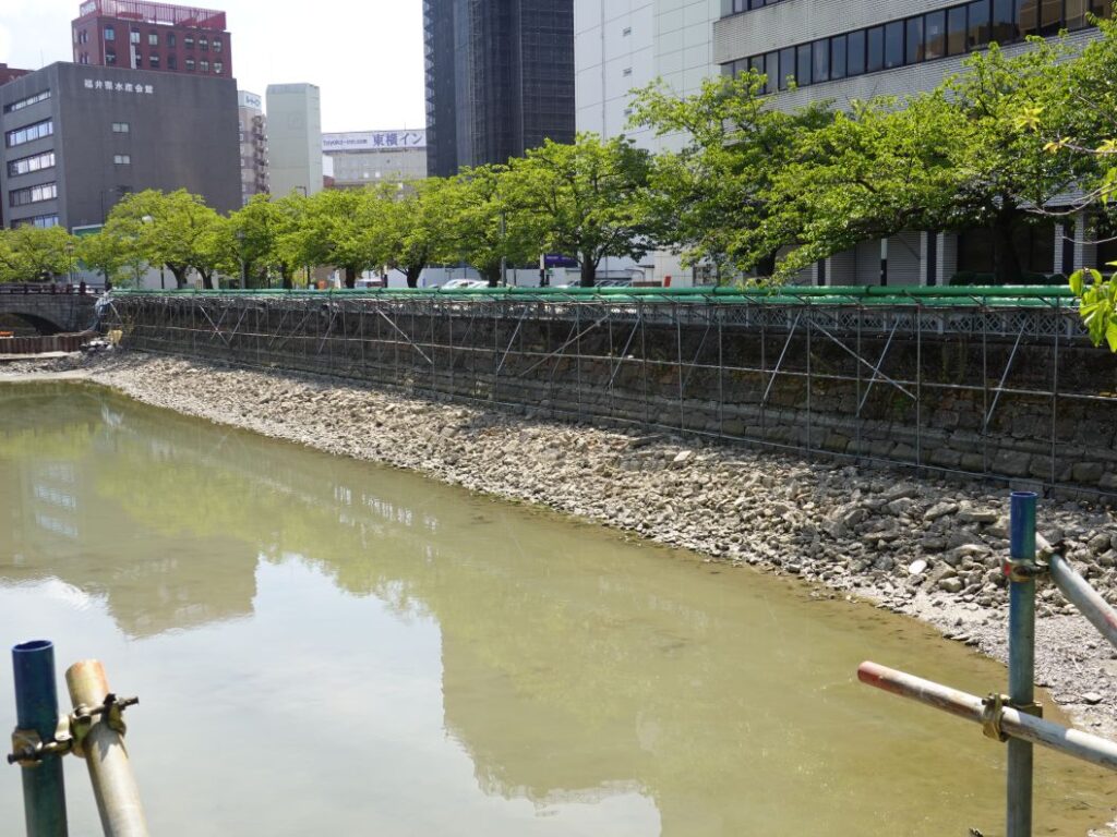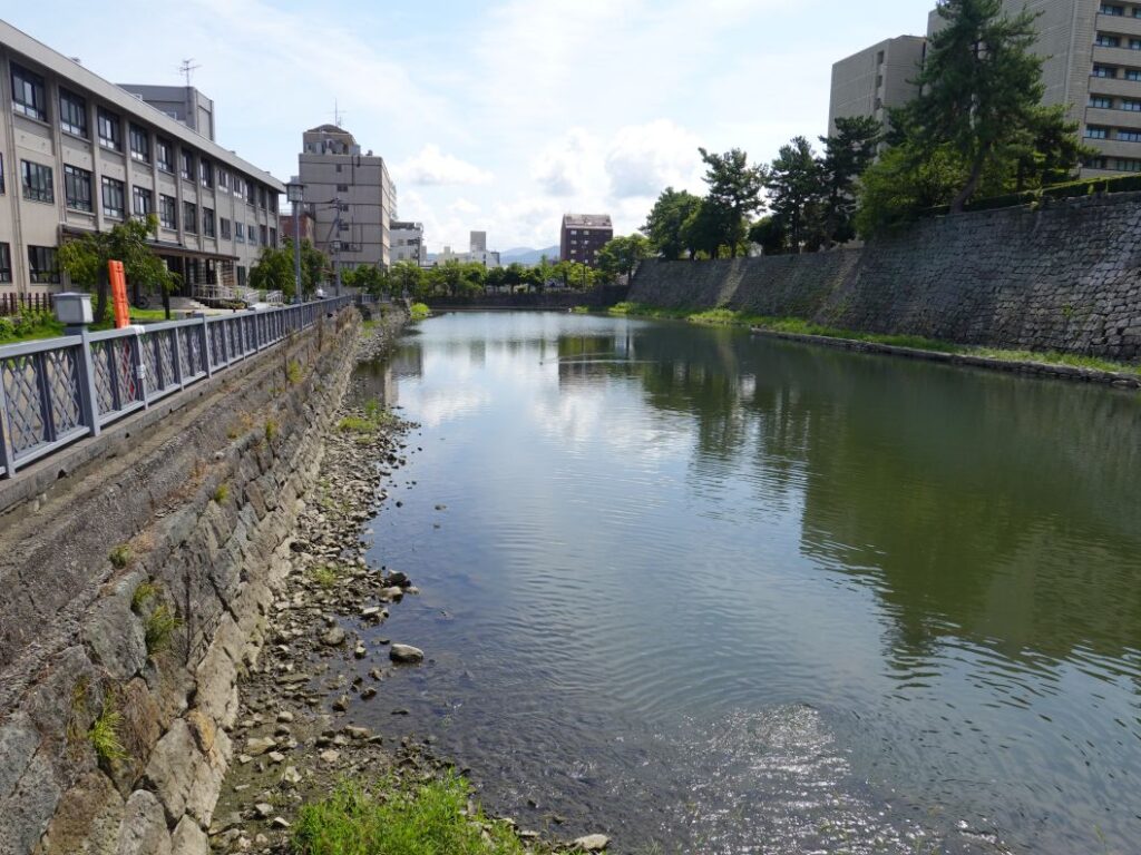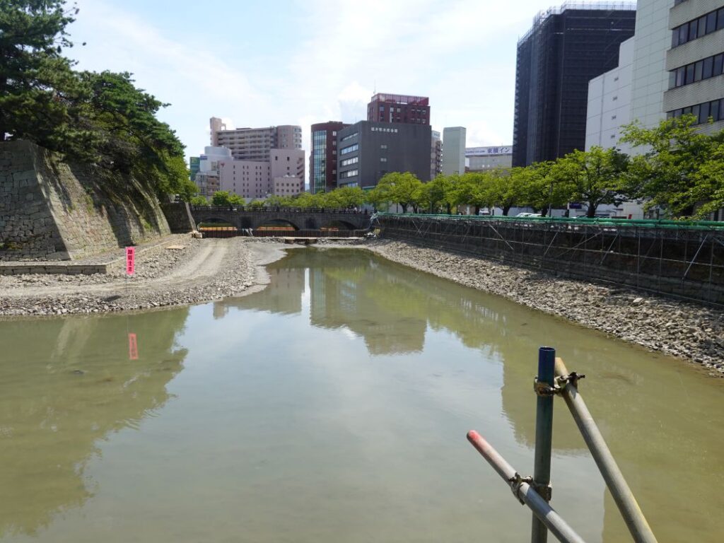 北西角です。全体的にお堀の水は1mほど下がっています。