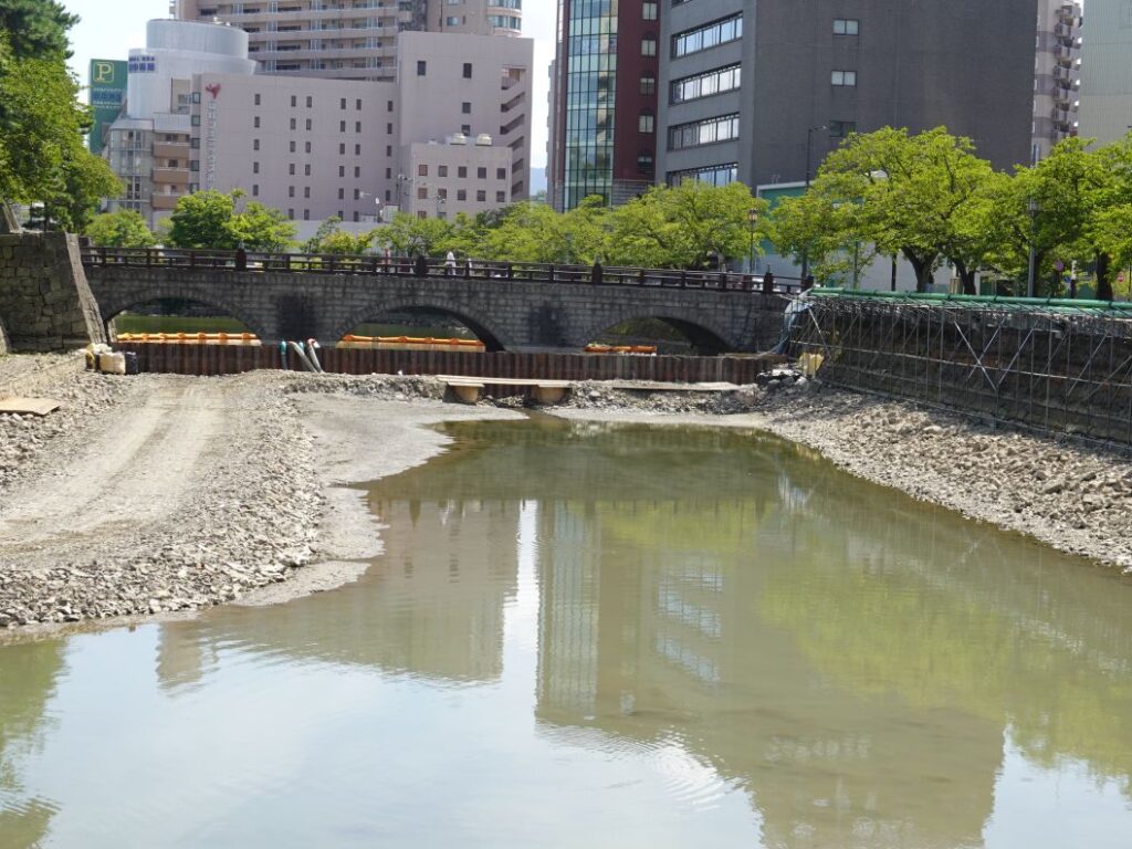 お堀内に降りるスロープが作られ、車両が出入りできるようになりました。