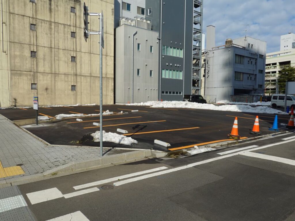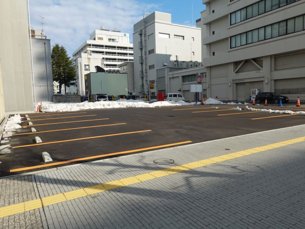 2026年2月15日の様子です。駐車場の本体は2025年12月末に完成し、現在は供用開始待ちです。