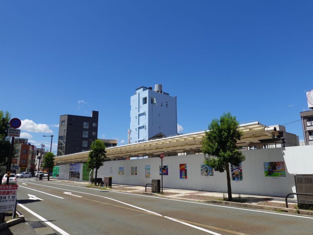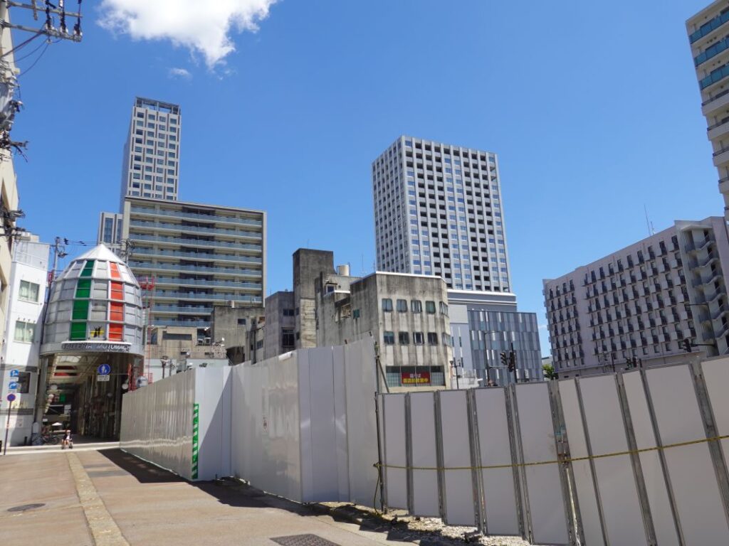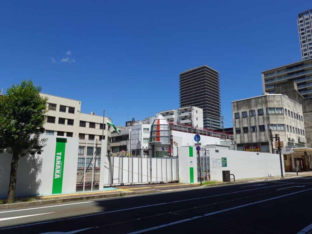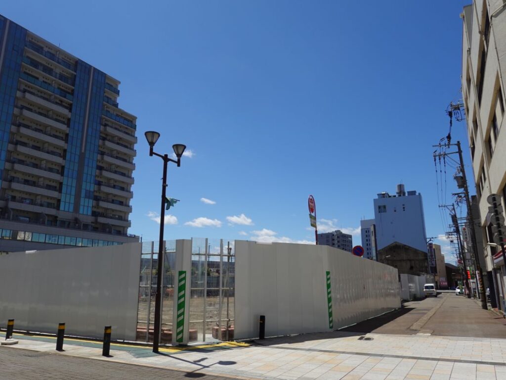 福井駅南通り沿いでは2024年10月から既存建物の解体工事が本格化しました。ここでは2025年7月下旬現在の様子を紹介します。