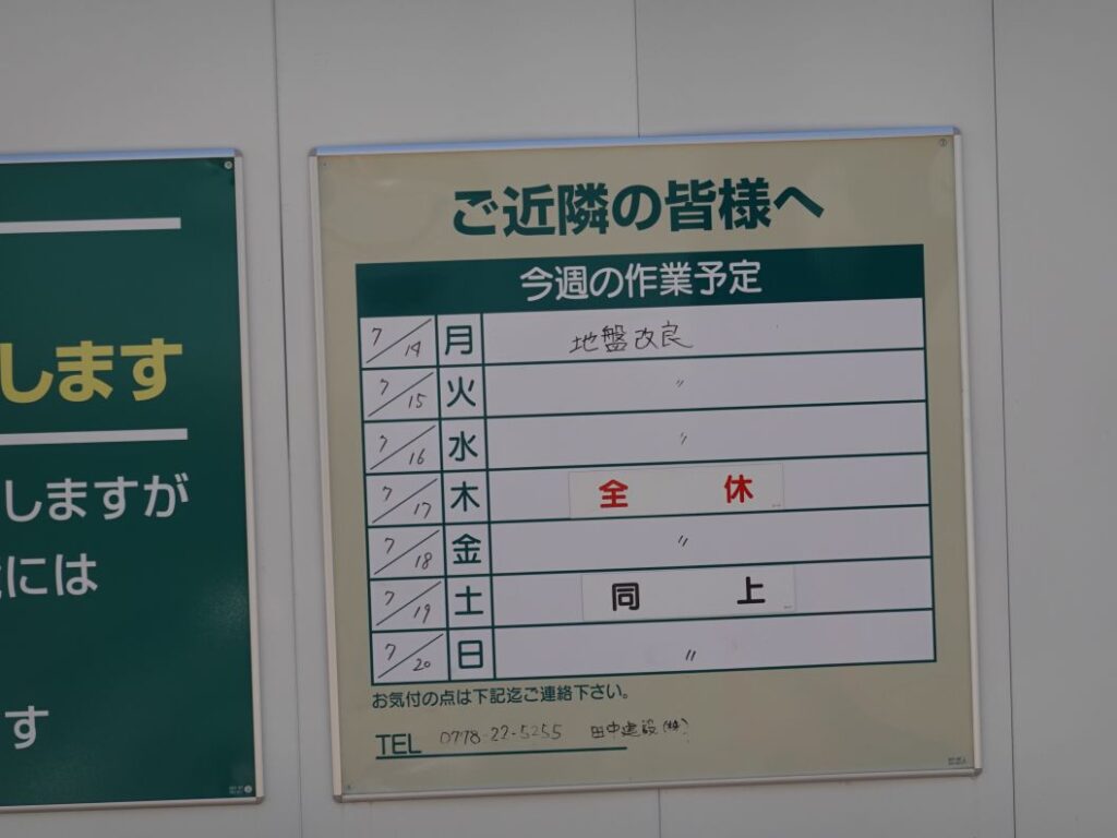 2025年7月14日の週の作業予定です。地盤改良が行われています。