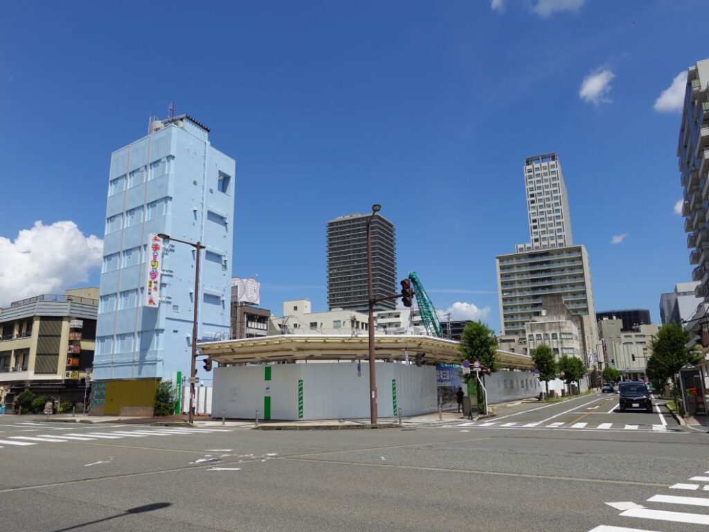 福井駅南通り沿いでは2024年10月から既存建物の解体工事が本格化しました。ここでは2025年8月中旬現在の様子を紹介します。
