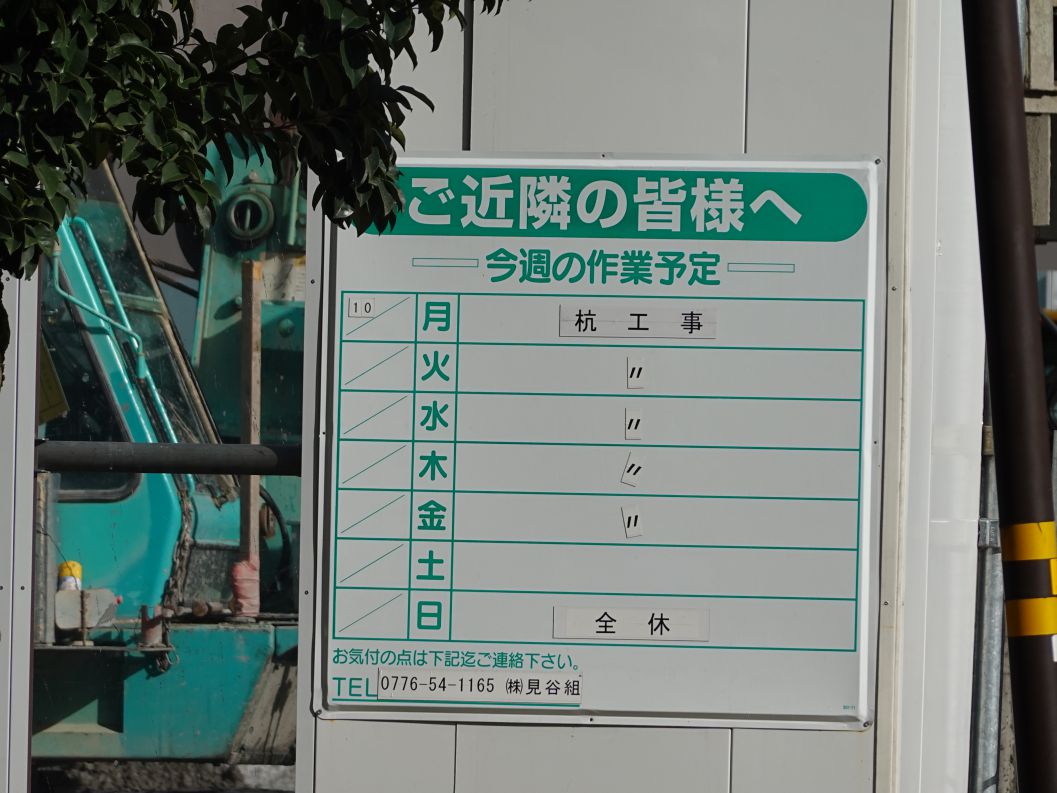 2025年10月27日の週の作業予定です。杭工事が行われています。
