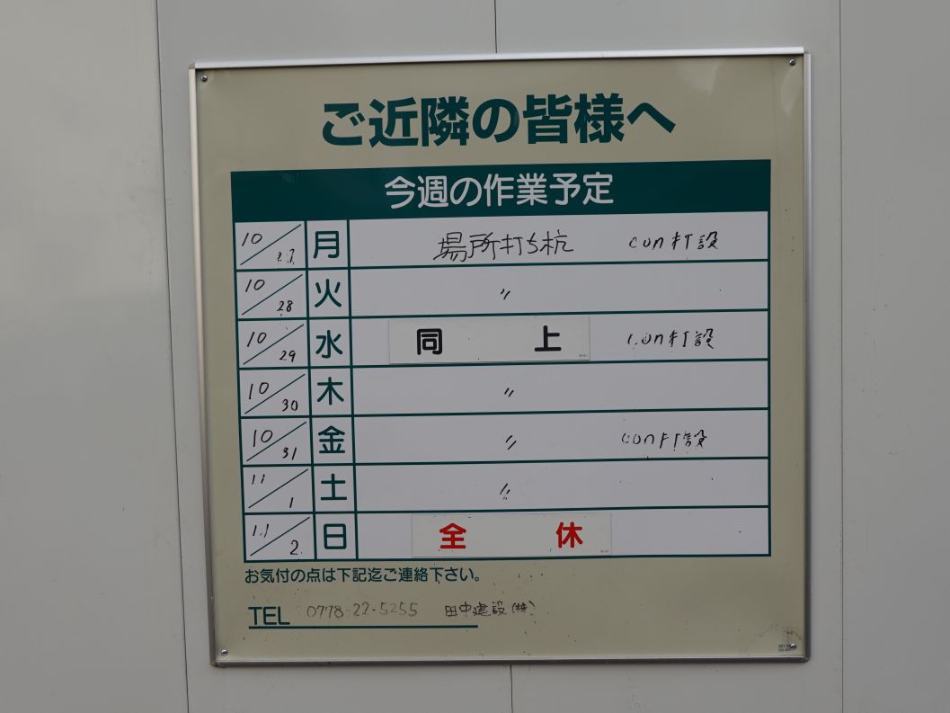 2025年10月27日週の作業予定です。場所打ち杭が行われています。