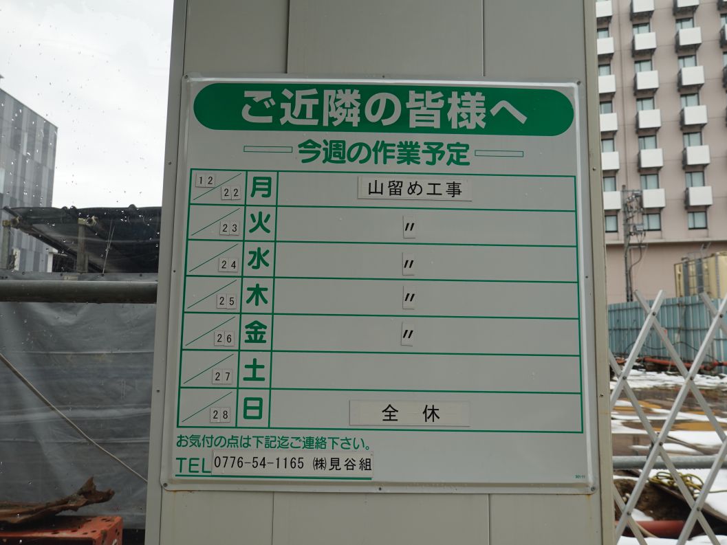 2025年12月22日の週の作業予定です。山留め工事が行われています。