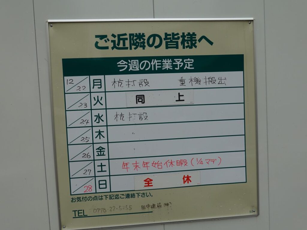 2025年12月22日週の作業予定です。杭打設が行われています。