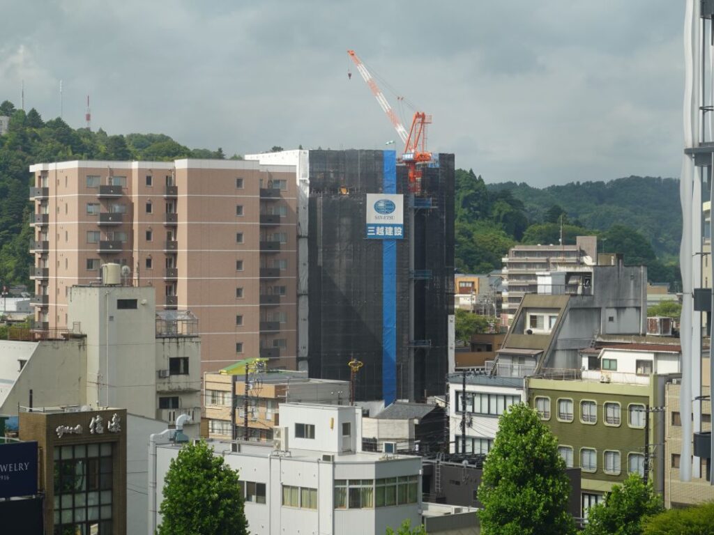 繊協ビル駐車場棟屋上からです。隣の10階建てマンションの高さを超えました。