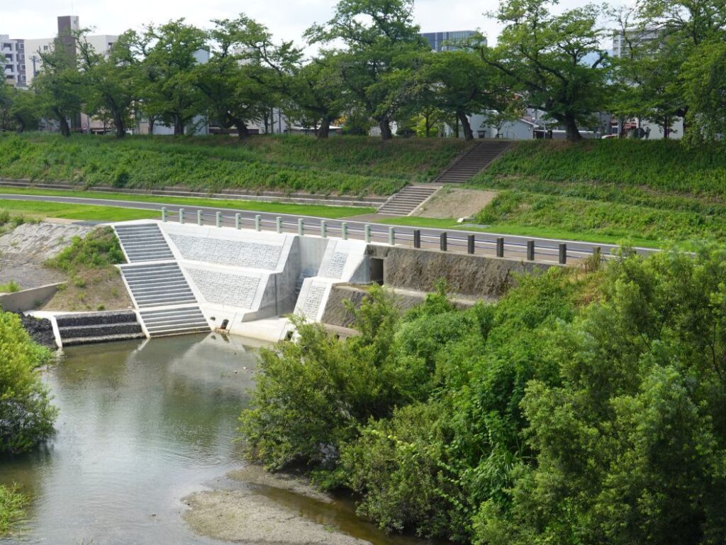 足羽ポンプ場の足羽川吐き出し口の工事が終わりました。