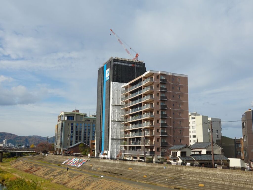 福井市中央3丁目、通称浜町の足羽川沿いに15階建ての大規模マンションが建設中です。建設主体は広島拠点に全国に大規模マンションや再開発事業を施工しているデベロッパーの株式会社マリモで、2024年8月に工事着手、2026年5月に竣工予定です。こ[…]