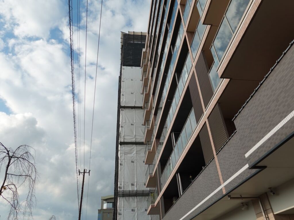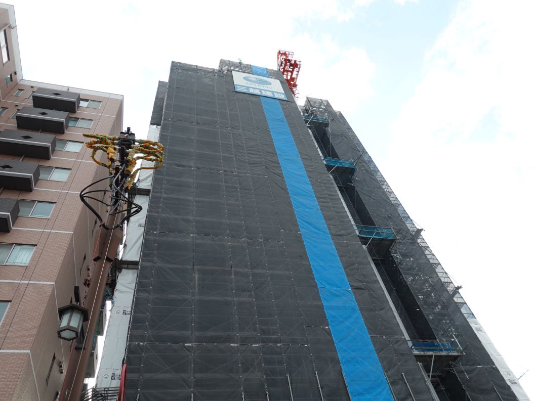 2025年12月7日の様子です。最上階の15階の施工をしています。