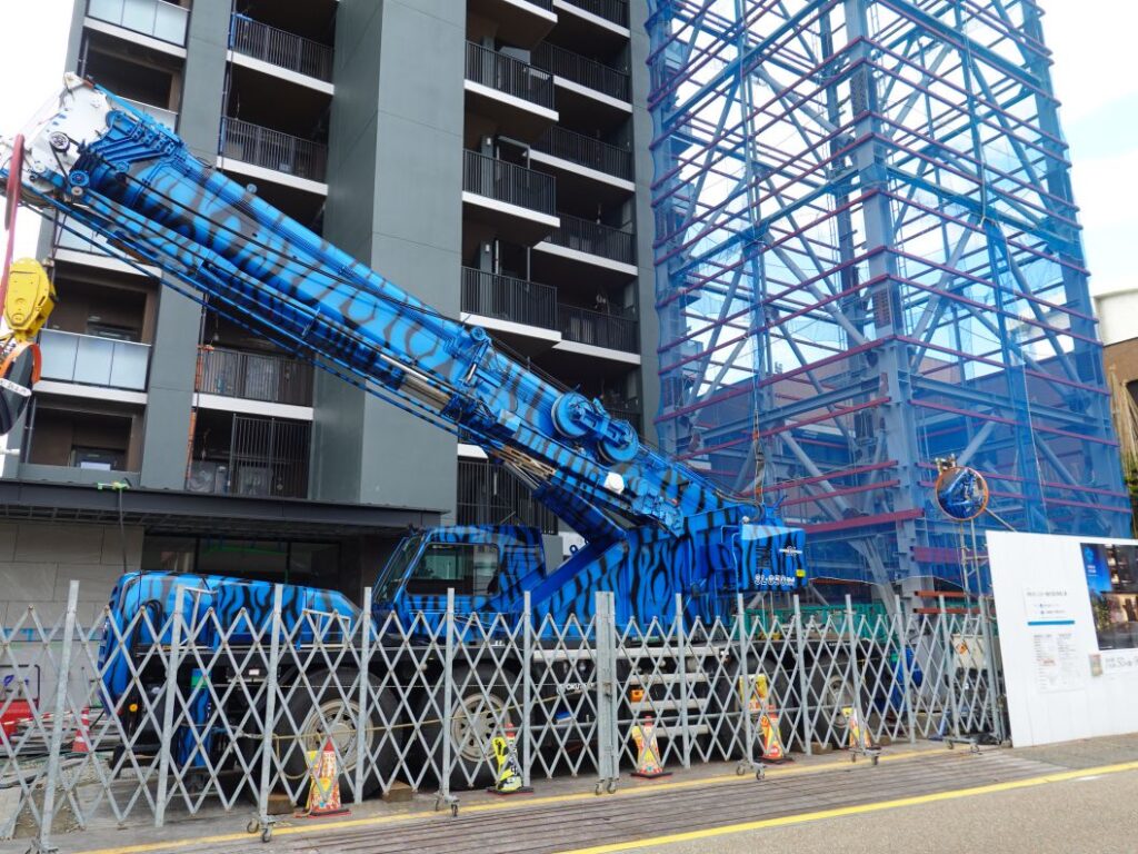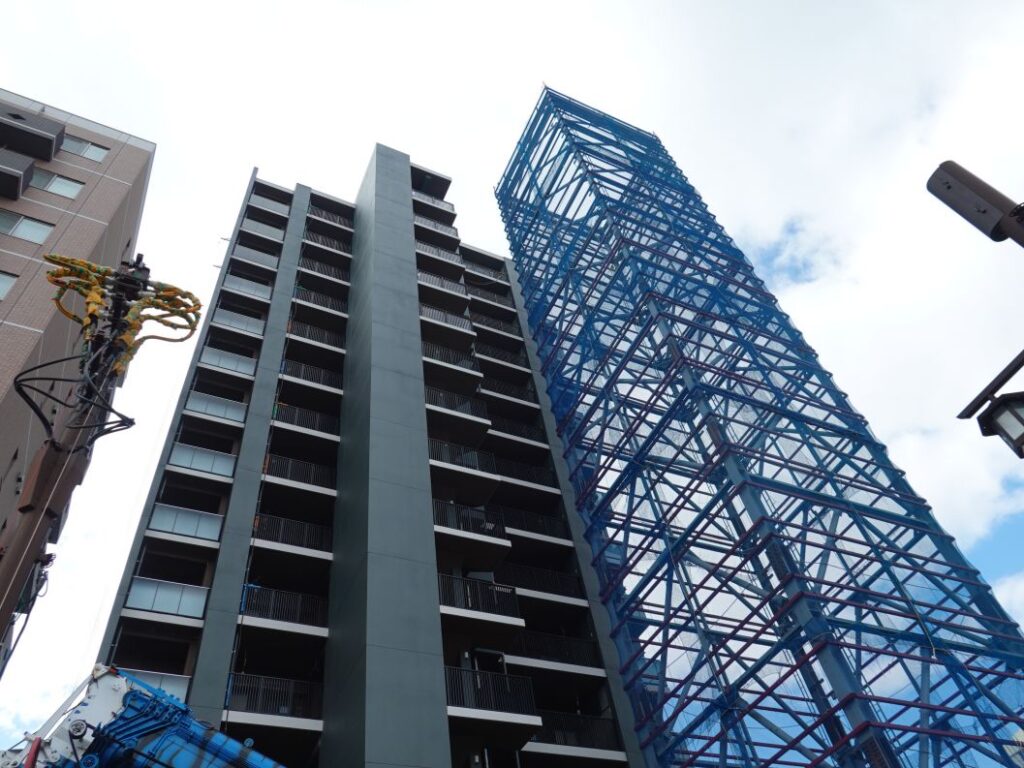 北側です。立体駐車場の鉄骨をくみ上げています。