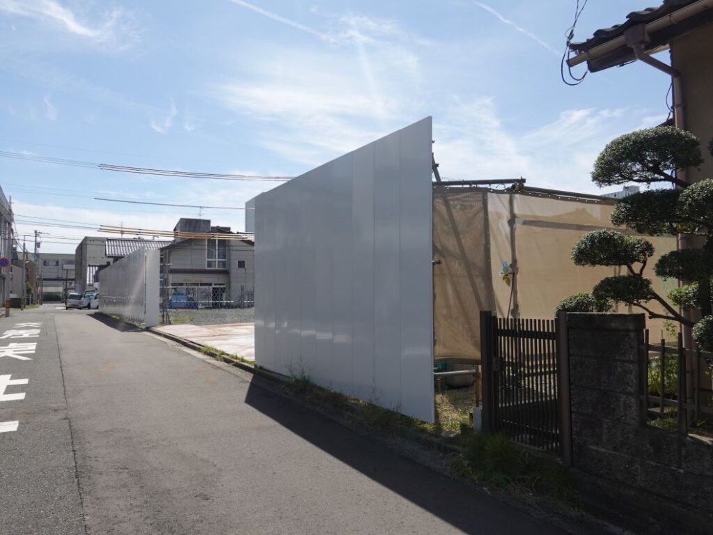 南側です。仮囲いを設置しています。
