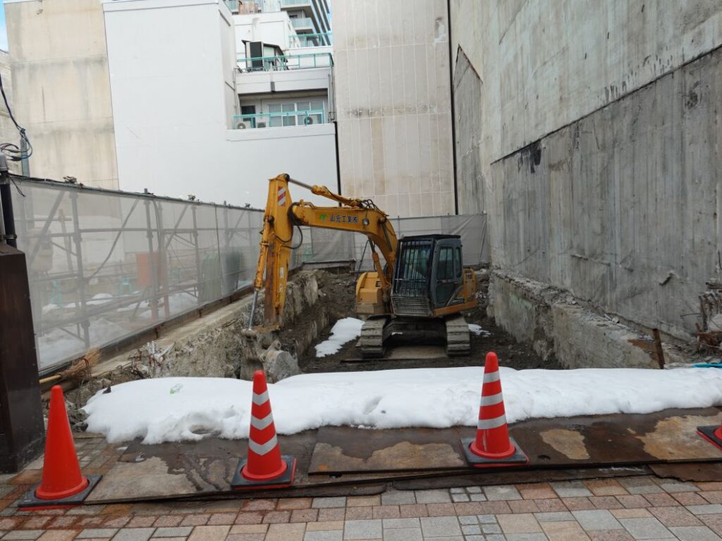 2026年2月15日の様子です。地下階の解体工事が行われています。