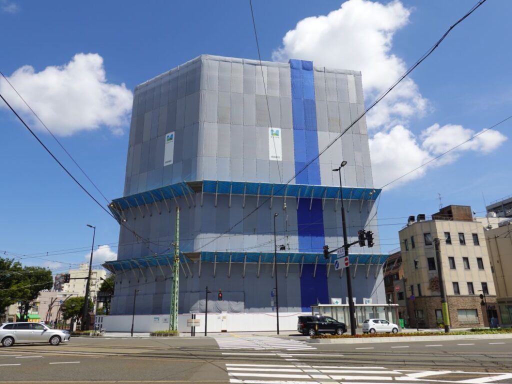 福井県繊協ビルはオフィス棟(業務棟)が2021年8月2日に竣工、駐車場棟は2023年9月13日竣工、最後のホテル棟を建設中です。