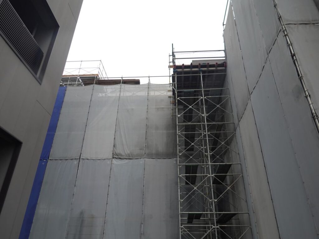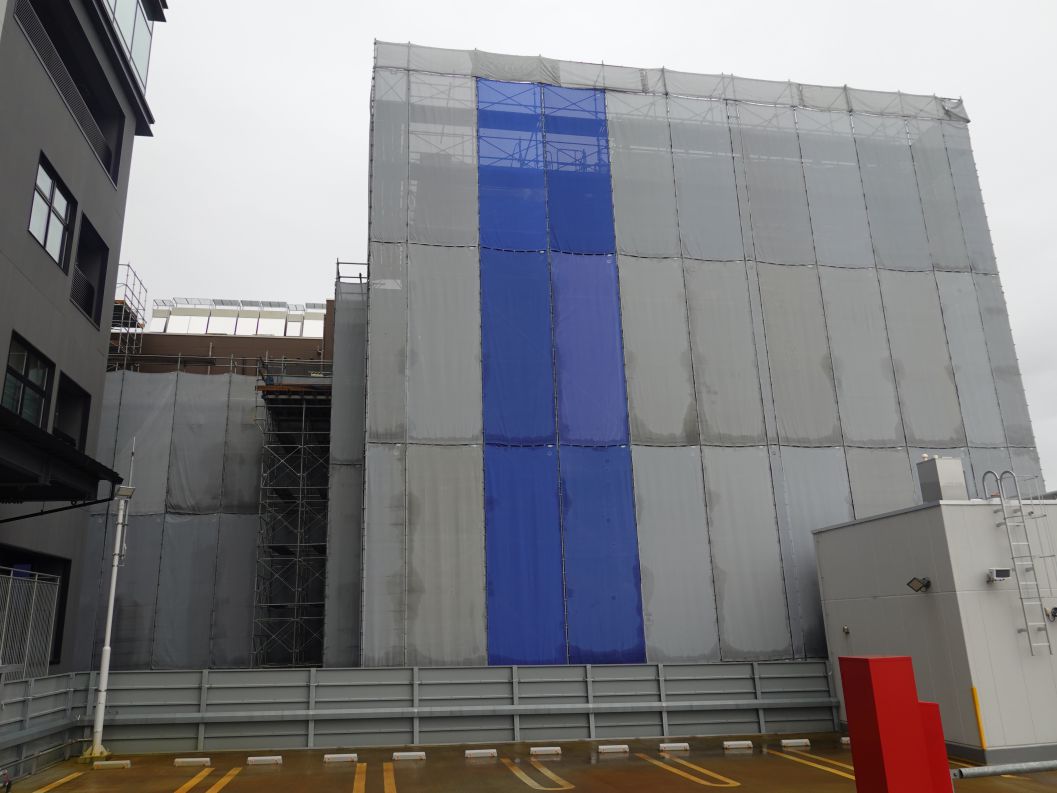 2025年10月5日の様子です。外壁・内装工事が行われています。外観上の変化はないです。
