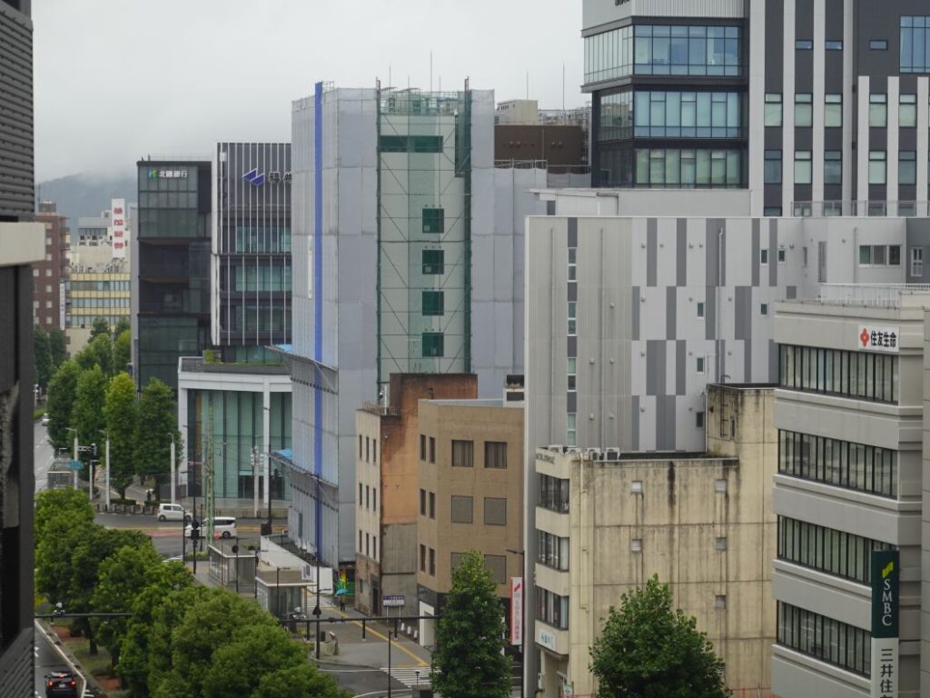 福井県繊協ビルはオフィス棟(業務棟)が2021年8月2日に竣工、駐車場棟は2023年9月13日竣工、最後のホテル棟を建設中です。