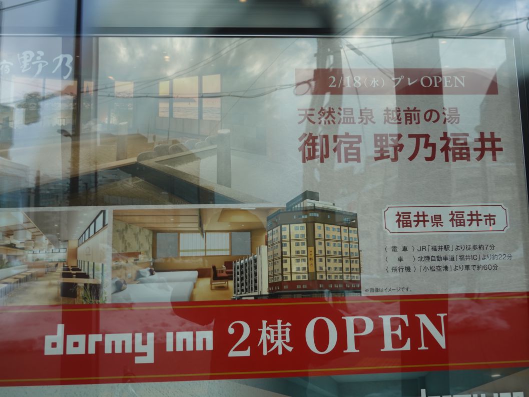 ・ホテル棟:地上10階、ドーミーインの高級和風ブランドである「御宿野乃福井」が入居予定(2024年3月着工、2025年10月完成)